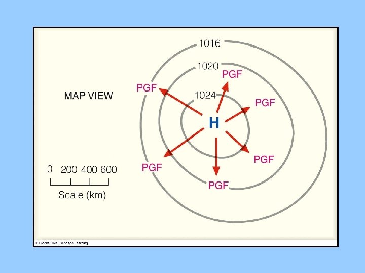 Pressure Gradient Force Pressure gradient = ∆p/d ∆p: difference in pressure d: distance PGF has direction & magnitude Direction: directed from high to low pressure at right angles to isobars Magnitude: directly related to pressure gradient Tight lines (strong PGF) stronger wind PGF is the force that causes the wind to blow