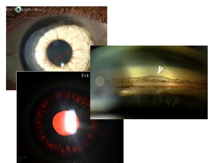 Pressure. . • History – Symptomatic vs Asymptomatic • Anterior Segment signs – Red eye – KS, KPs and corneal pathology – AC activity and depth – Iris atrophy / TIDs / NVI – Significant cataract