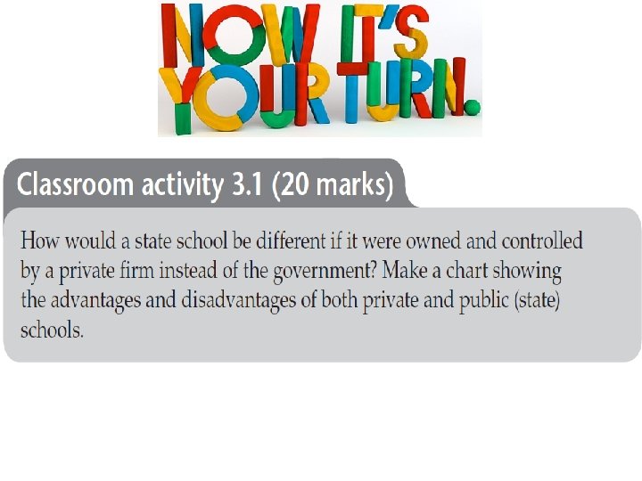Privatisation: sale of state-owned enterprises to private individuals. Problem: free market economics takes over. Public interest profit motive. Nationalisation: government takes over privately owned enterprise. Problem: Profit motive inefficiencies). public interest (can cause