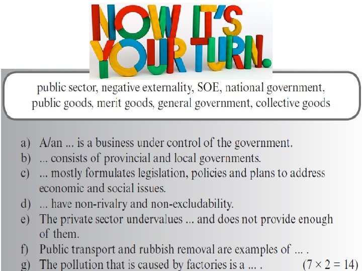 What you need to know (CAPS) • Evaluation of the role of the public sector in the economy with special reference to its socioeconomic responsibility in the South African context. • The composition and necessity of the public sector • Problems of public sector provisioning • Objectives of the public sector and its budgets • Fiscal policy (including the Laffer curve) curve • Reasons for public sector failure