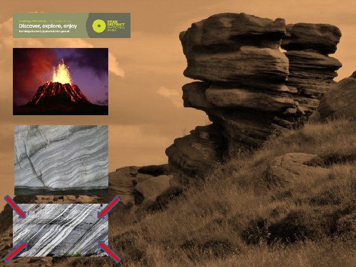 Lava from beneath the Earth’s crust reaches the surface and cools. These are called igneous rocks. Small rock particles or the hard shells of animals form layers. These are called sedimentary rocks.