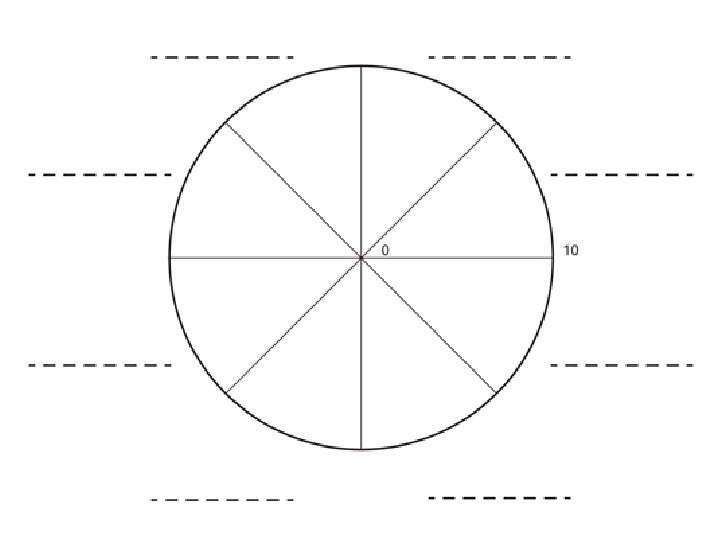 Wheel of Wellbeing Join up the marks around the circle by drawing a straight or curved line to create a new outer edge. Now, look at the wheel, does it look balanced? Will it roll? What are the gaps? Where do you have opportunity to make changes and increase your satisfaction? What changes do you need to make to get the wheel to roll? It is not a picture of how it has been in the past or what you want it to be in the future. It is a snapshot taken in the here and now. Note: Different areas of your life will need different levels of attention at different times.