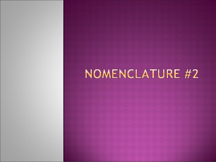 The one with the fewest oxygens has the prefix hypo- and ends in ite Ø Cl. O− : hypochlorite The one with the most oxygens has the prefix per- and ends in -ate Ø Cl. O 4− : perchlorate