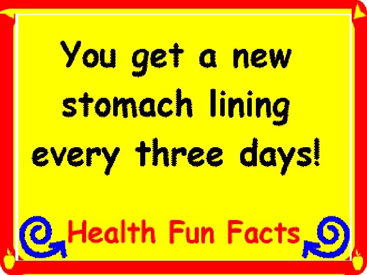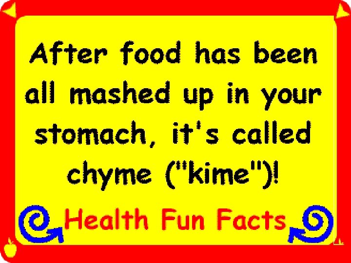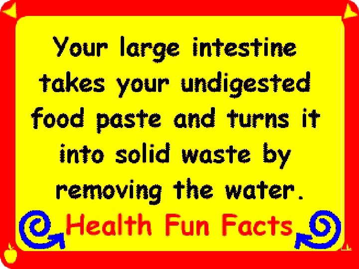 Digestive System Quiz TRUE OR FALSE • The job of the digestive system is to break food down so that our bodies can use it as fuel or energy. TRUE or FALSE • Your stomach is located right behind your belly button. TRUE or FALSE • Your small intestine is approximately 20 - 25 inches long. TRUE or FALSE