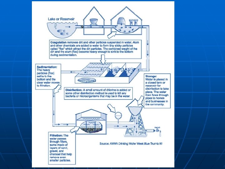 Tertiary Treatment Chemical methods designed to remove particular chemicals (requires a process for every different chemical) n Growing concern – pharmaceuticals in the water supply (hormones, Ritalin, antidepressants) n