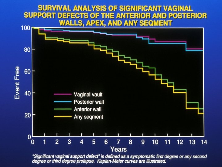 Is the Success rate High or Low? • The success rates after POP surgery vary considerably depending upon the definition of treatment success. • Some degree of vaginal relaxation is normal in most parous women. • When strict anatomic criteria are used, the success rate of native tissue repair, particularly anterior repair is low. • However, strict anatomic criteria appear to have little relationship to a patient’s perception of treatment success. • When more clinically relevant criteria are used, treatment success is substantially better.