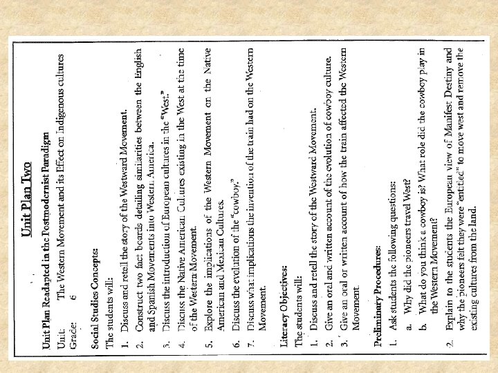 Modifying Unit Plans • Unit one inherently, though perhaps not intentionally, perpetuates White supremacist ideology. • There are other problems with lesson one, pedagogically speaking. What areas can you see White supremacist ideology in the lesson plan?