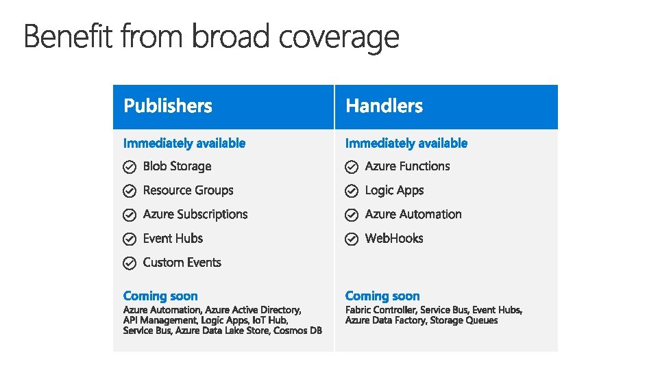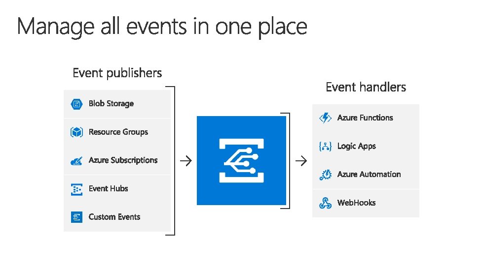 • Azure Functions – Serverless compute • Logic Apps – Serverless connectivity and workflows • Service Bus – Serverless messaging • Event Grid – Serverless Events
