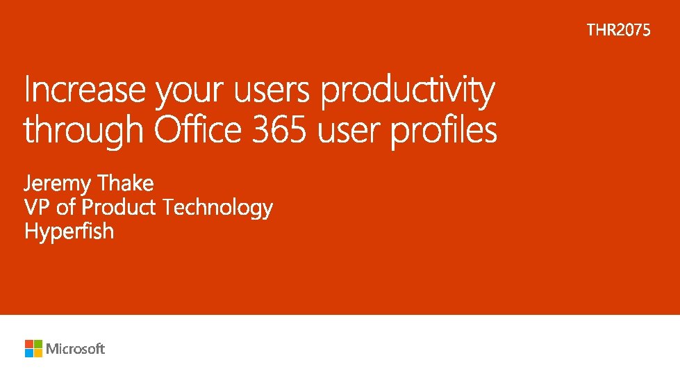 Who am I? Vice President of Product Technology 3 yr Microsoft Product Manager 5 yr Share. Point MVP https: //blog. Hyperfish. com @jthake Jeremy Thake VP Product Technology
