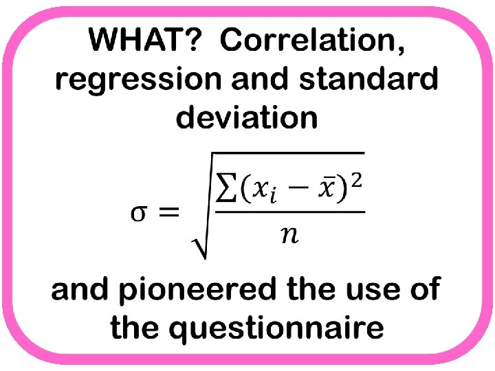 WHO? Francis Galton WHEN? 1822 - 1911 WHERE? S 1, S 2 GEEK RATING: