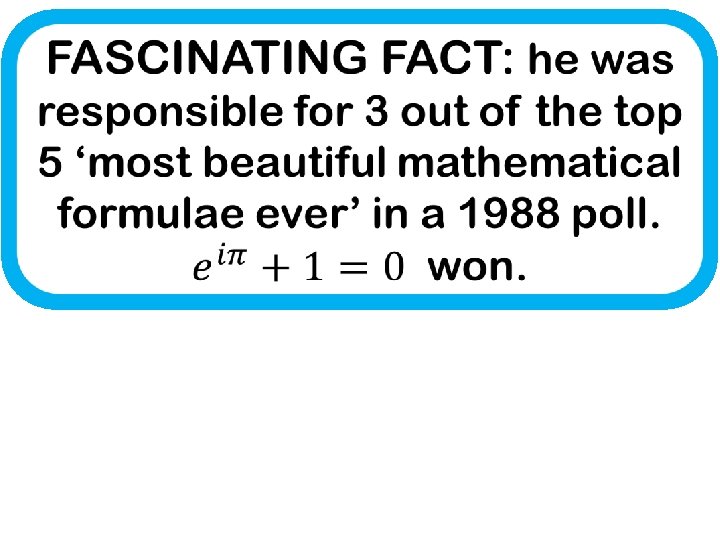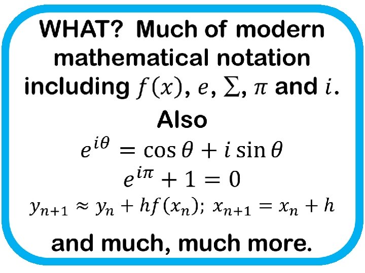 WHO? Leonhard Euler WHEN? 1707 - 1783 WHERE? C 2, D 1, FP 1 -3 GEEK RATING: