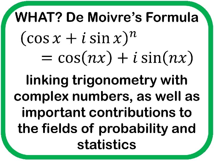 WHO? Abraham de Moivre WHEN? 1667 - 1754 WHERE? S 2, FP 3 GEEK RATING: