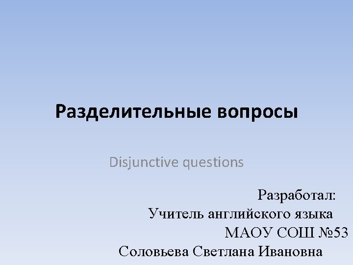 1. Your sister isn’t married, ………. ? 2. You found my keys, ………. ? 3. I am very smart, ………. ? 4. Jack didn’t pass his exams, ………. ? 5. Our love will last forever, ………. ? 6. You have never been to China, ………. ? 7. Sandra has already got up, ………. ? 8. My coffee and croissants are not cold, ………. ? 9. They won’t spend all their money, ………. ? 10. Tim is fond of table tennis, ………. ? 11. This palace was built in the 16 th century, ………. ? 12. Her son often rides a horse in the country, ………. ? 13. The waiters were not polite, ………. ? 14. You prefer seafood, ………. ? 15. The students don’t speak French, ………. ? 16. She can’t play the violin, ………. ? 17. They can see the mountains from the window, ………. ? 18. Your boyfriend doesn’t earn much, ………. ? 19. We must talk to our neighbors, ………. ? 20. The train must not arrive late, ………. ?
