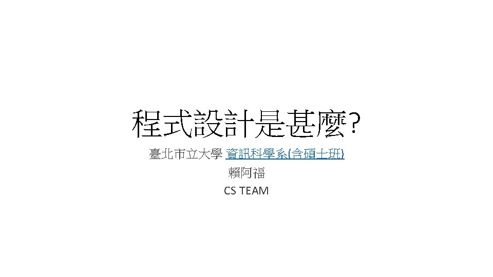 撥動開關(Flipping Switches) 最早的電腦,無法用鍵盤輸入文字;而是要撥動電接電腦不同部 分的開關。 如果你想要兩個數字相加,你就把數字部分的線路和加法的線路 連起來,再和另外一個數字的線路連起來,最後把線路連到輸出 結果的地區。 早期電腦只有資料被儲存在記憶體,而程式是透過手 操作設定線路系 統的開關 Stored program: a memory to store both data and instructions von Neumann model and Princeton architecture Babbage‘s. Analytical Engine, the first general-purpose programmable computer (https: //en. wikipedia. org/wiki/Hi story_of_computing_hardware)