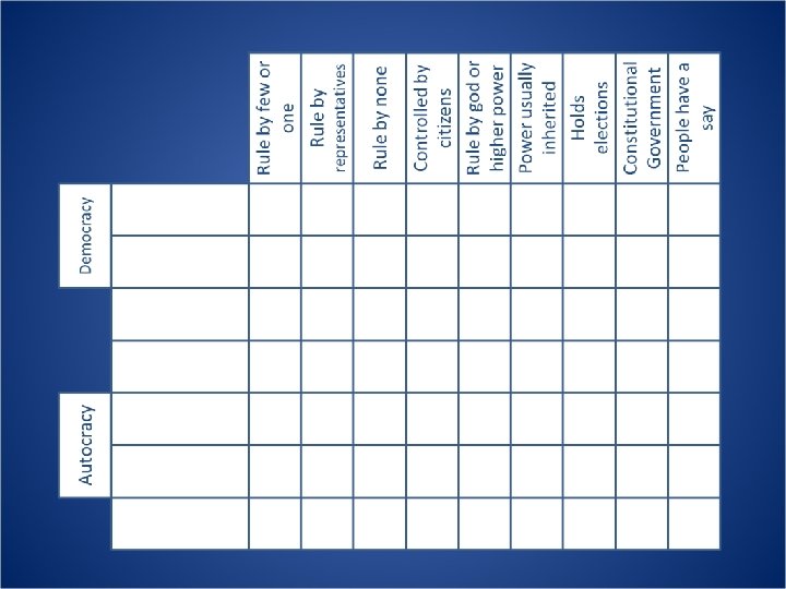 What else? … and AUTOCRACIES… Autocracy is… … rule by one!