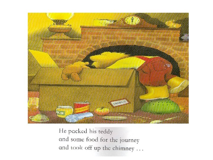 Mrs Bear came into the room. “Look at the state of you!” she gasped as she led him away to the bathroom. “Why, you look as if you’ve been up the chimney. ”
