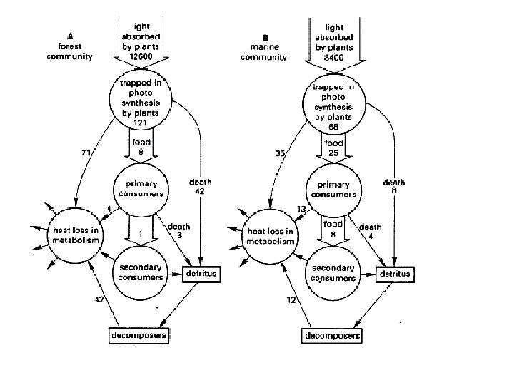 Calculate… The photosynthetic efficiency. Gross primary production. Net primary production. Percentage transfer to food chains.