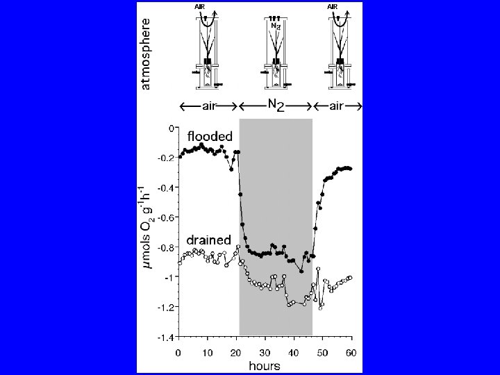 Root - high O 2 uptake O 2 Root surface O 2 mitochondria High oxygen consumption and/or low aerenchyma supply