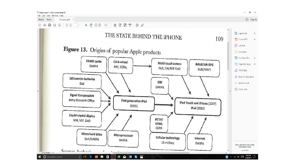 Marriana Mazzucato • https: //www. youtube. com/watch? v=p 4 Dhbj. Z 74 IQ • “The real innovation engine in the global economy is not the entrepreneurial class blazing capitalist trails through the thicket of government red tape and taxation. No. The real engine of innovation is government. ” Economist Mariana Mazzucato’s “case study for myth-debunking is the i. Phone, that icon of American corporate innovation. Each of its core technologies–capacitive sensors, solid-state memory, the click wheel, GPS, internet, cellular communications, Siri, microchips, touchscreen—came from research efforts and funding support of the U. S. government and military. Did the public see an i. Phone dividend? Not really. ”