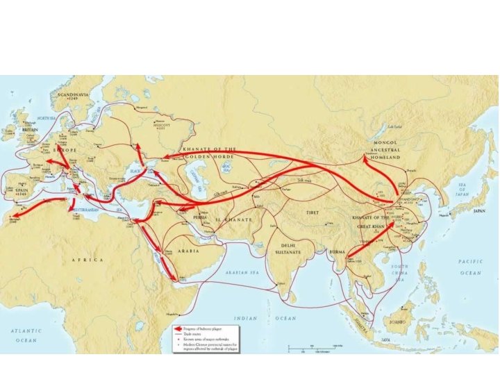 Effects of the Plague • Death of 50% of the population of Europe and Asia (2 nd largest population adjustment in History) • Broke up the Mongol Empire/Ended the Pax Mongolica • Made Christians Question their relationship to God • Led to new discoveries in science and medicine • Led to a more practical perspective on science and medicine • Greatly increased the average wealth of the survivors.
