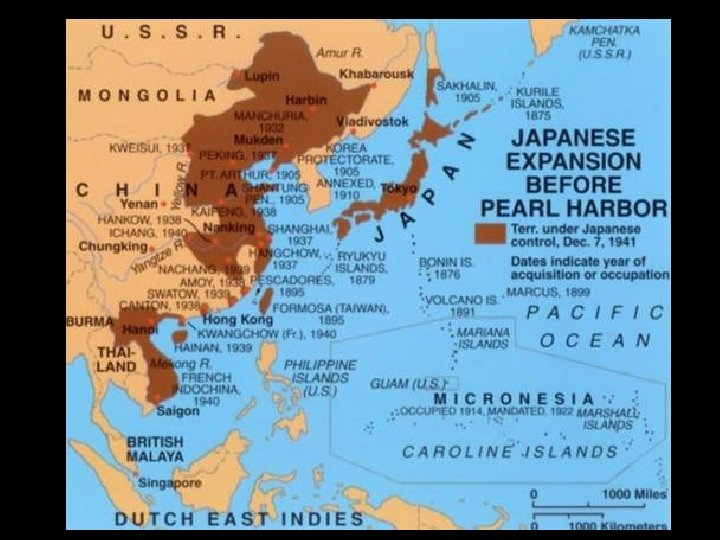 Japan Responsible for the Pacific War • This meant Japan had to go against the ideas of economic equality, free trade, and China’s sovereignty, guaranteed by Japan in the 1922 Nine-Power Treaty. • Yet USA needed to maintain the Open Door Policy as matter of principle (anticolonialism) and as a matter of strategy to ensure the flow of resources to aid the Allied cause in Europe. • After 1941, USA also had to ensure Japan wouldn’t attack its ally, the USSR. This required a strong US stance vs. Japan.