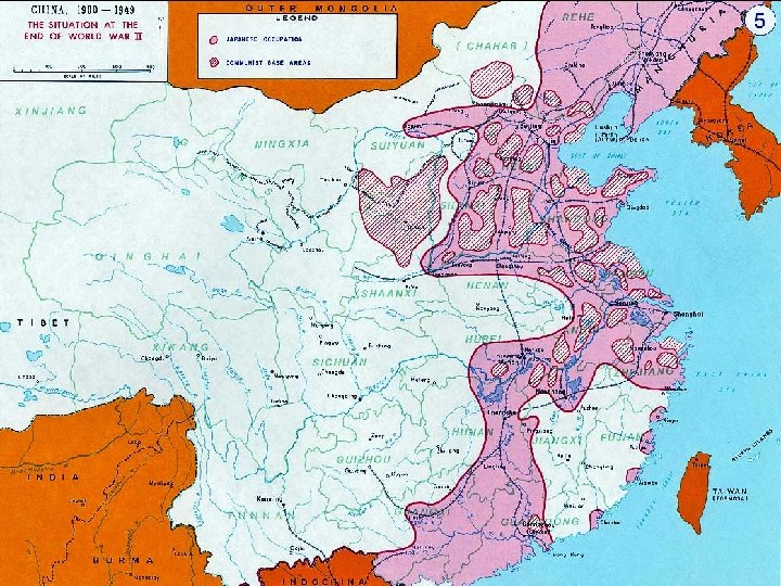 China in 1945 • The Allies decided that Chiang should be reinstated as ruler of China. Even Stalin agreed to this. • US Dakota planes rushed 110, 000 KMT troops to the cities and bases in the north to accept the surrender of Japanese troops & equipment before the Communists could do so. • In response the Communists moved into Manchuria and captured many ex-Japanese weapons. Why do you think Stalin agreed to reinstate Chiang rather than Mao as leader of China?