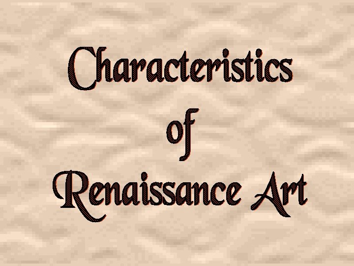 Characteristics Carousel Objective: Page 20 in your notebook / To learn about the SIX characteristics of Renaissance Art Directions: / In pairs, you will be assigned a. COLORED poster / You will have 5 minutes to get the required information from each poster to complete your learning guide. / You must DRAW ON YOUR LEARNING GUIDE in order to receive credit Time Allowed: 30 minutes