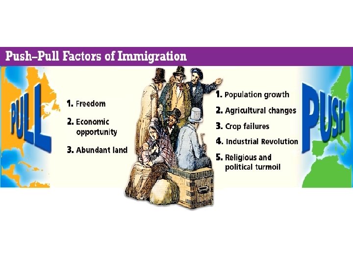 Push / Pull Factors • What is a push / pull factor? • PUSH: __________________________________ • Pogroms – organized, anti-Jewish attacks • PULL: __________________________________ • “land of milk and honey…streets paved with gold…”