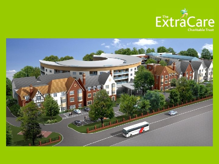 How is the Extra. Care Charitable Trust different? • “Conventional” extra care • Rent/shared ownership or sales • 40 -60 homes? • Most receive care – alternative to residential care • Grant • Extra. Care Charitable Trust • Mix of “full” sales, s/o and rental (50: 30: 20? ) • 250 homes typically • Lifestyle • Minority receive care (25% - 33%? ) • Activities and volunteering • Low/no grant • Sales cross subsidy