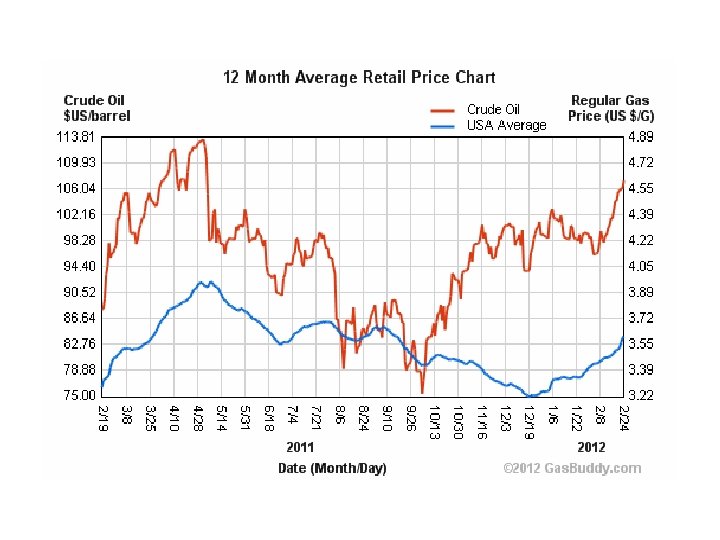 Why Are Gas Prices So High? q High gas prices are generally caused by high prices for crude oil, which accounts for 55% of the price of gasoline. q Distribution and taxes influence the remaining 45% of gas prices. q Usually, distribution and taxes are stable, so that the daily change in the price of gasoline directly reflects oil price fluctuations.