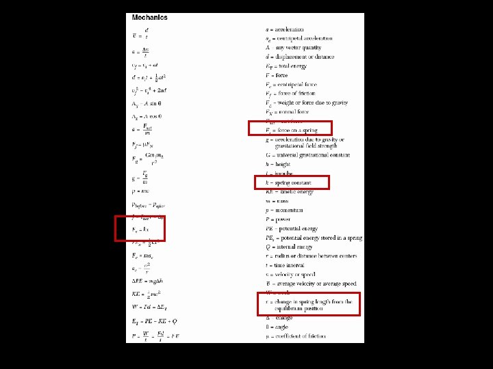 What are the units of the spring constant, k? Solve… …for k: units of k: Fs = kx k = [k] = [ Fs/x ]/[Fs = ] x N/m(derived) This can be also seen from the graph: Fs (N) k = the slope = Dy/Dx So k has the same units as Dy/Dx: x (m) N/m