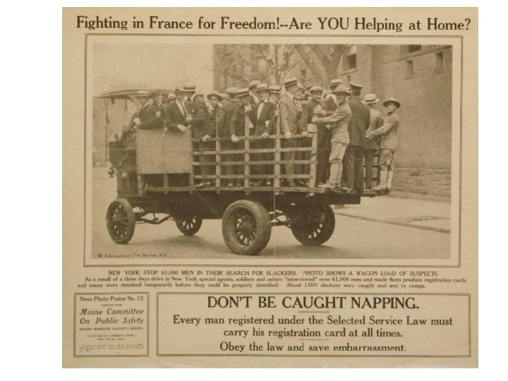 Warning published in NY State’s Albany Journal “If you ever, on the street or in a trolley car, should hear some softshell pacifist or hardboiled but poorly camouflaged pro-German, make seditious or unpatriotic remarks about your Uncle Sam you have the right and privilege of taking that person by the collar, hand him over to the nearest policeman or else take him yourself before the magistrate. You do not require any official authority to do this and the only badge needed is your patriotic fervor. The same thing applies to women. Every American, under provisions of the code of civil procedure, has the authority to arrest any person making a remark or utterance which ‘ outrages public decency. ’”