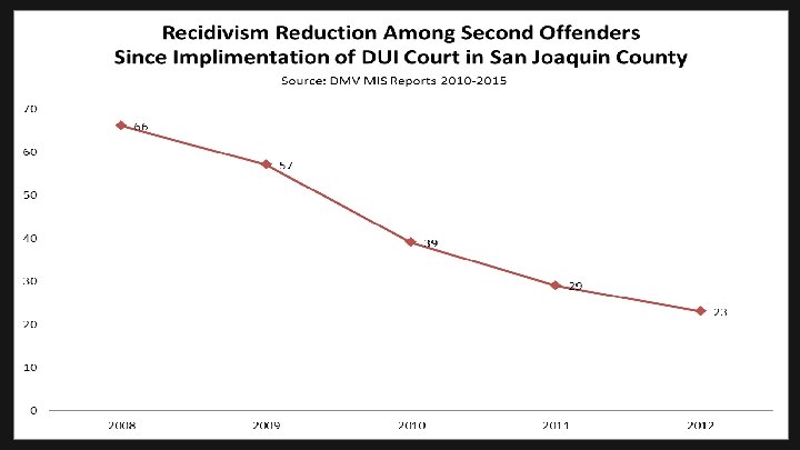 LIMITATIONS OF TRADITIONAL DUI COURTS n n n Numbers - should be no >125 n S. J. County - >500 repeat offenders per year Need to work with many more high risk offenders than traditional DUI Court handles Traditional DUI Court can exclude: n Many high risk substance abusers who need lesser interventions; and n Those who do not volunteer