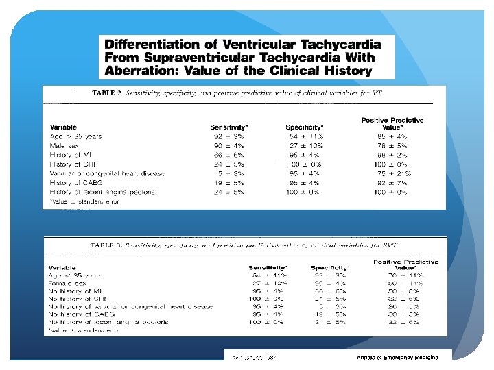 Intravenous Adenosine Triphosphate During Wide QRS Complex Tachycardia: Safety, Therapeutic Efficacy and Diagnostic utility - Sharma et al. The American Journal of Medicine, April 1990 Sensitivity: 70%, Broad Specificity: 92%, PPV: 85% Complex Tachycardia SVT not requiring the AV node 1/10 Significant shortening of RR interval VT SVT requiring the AV node 1/14 7/10