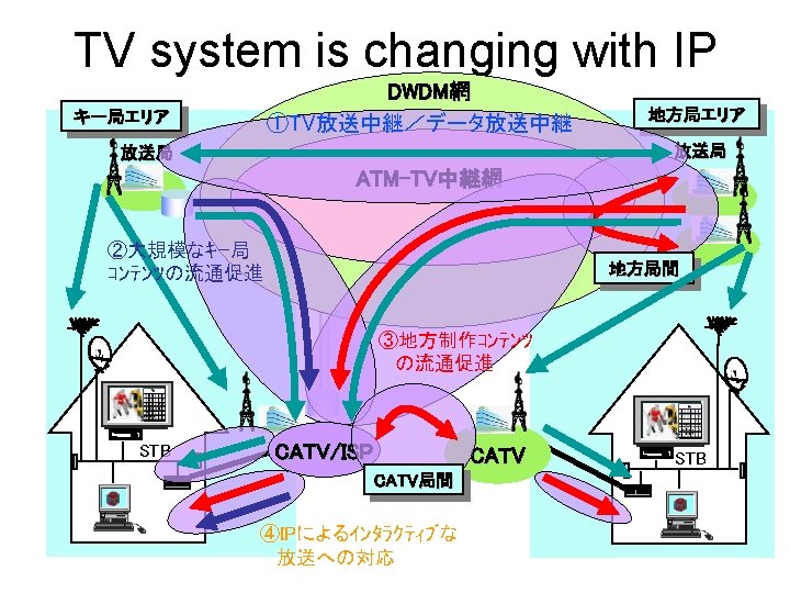 ネットワークトポロジ図 DV SEND 132 DV SEND 133 DV RECV 134 DV RECV 135 HD CLIENT 130 Cat 6 K $ traceroute 198. 32. 53. 10 1 203. 178. 133. 141 (203. 178. 133. 141) 18. 801 ms 38. 004 ms 7. 505 ms 2 tpr 2 -ae 0 -6. jp. apan. net (203. 181. 249. 97) 1. 977 ms 1. 903 ms 3. 945 ms 3 transpac-la-tpr 2. jp. apan. net (203. 181. 248. 129) 105. 506 ms 105. 878 ms 105. 445 ms 4 198. 32. 11. 38 (198. 32. 11. 38) 105. 890 ms 105. 728 ms 105. 717 ms 5 baja. ip 4. int (198. 32. 53. 10) 105. 667 ms 105. 657 ms 105. 621 ms 203. 178. 133. 130/28 DV & HD Demo SFC HD CLIENT 131 AS#4552 USC fujisawa IPv 6/v 4 Tunneling BI 4 K fujisawa yagami AS#2500 WIDE 10 Gbit Ethernet 3 ffe: 805: e 9/48 USC Robert Zemeckis Center DVTS 10 BI 4 K cat 6 K Cat 3760 nezu DV SEND 11 NTT Otemachi 7603 ZML 203. 178. 133. 142 VLAN 53 203. 178. 133. 141 APAN AS 7660 T-LEX 203. 178. 133. 128 T 640 AS 11537 : : 3 シカゴ経由 : : 1 BI 8 K Abilene – Pacific Wave - USC : : 2 SERVER 10 198.32.52. 0/24 DV ETC 198.32.53. 0/24 HD Demo