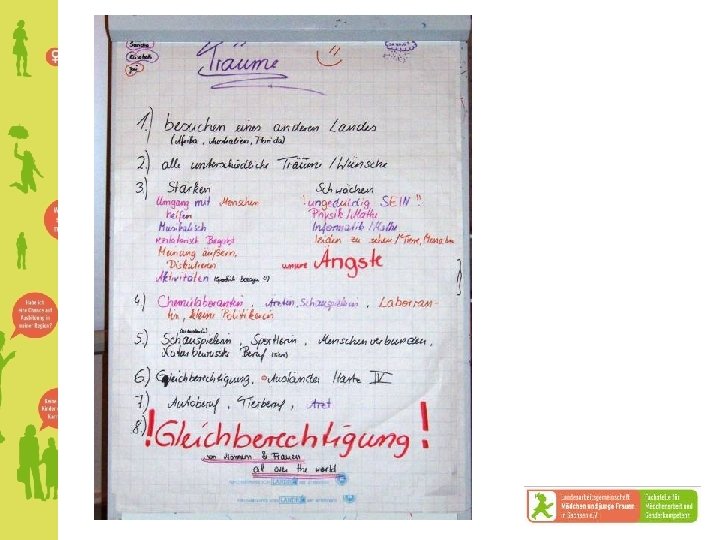 Foto: Arbeitskreis Mädchen im Landkreis Meißen 2002 Foto: LAG; Trickfilm zu Girls Culture 2007 z. B. durch Organisation von landkreisweiten Projekten auch in den Bereichen, Selbstbehauptung, Erlebnispädagogik und Medien