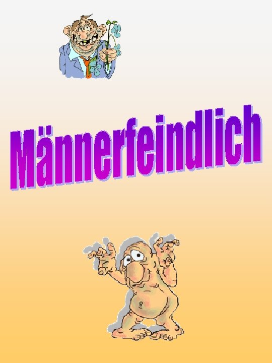 Was haben ein Mann und ein Gebrauchtwagen gemeinsam? Beide sind leicht zu kriegen, billig und unzuverlässig. Warum mögen Männer intelligente Frauen? Gegensätze ziehen sich an. Warum haben Männer keinen Busen? Weil sie mit Doppelbelastung nicht umgehen können. Warum haben Männer ein so reines Gewissen? Weil sie es noch nie benutzt haben. Warum fahren Männer so gerne BMW? Weil es das einzige Auto ist, das sie buchstabieren können. Warum sprechen Blondinen nicht mit Männer? Weil sie so blöd nun auch wieder nicht sind. Was macht eine Frau, wenn ihr Mann aus dem Fenster springen will? Sie gibt ihm den Müll mit.