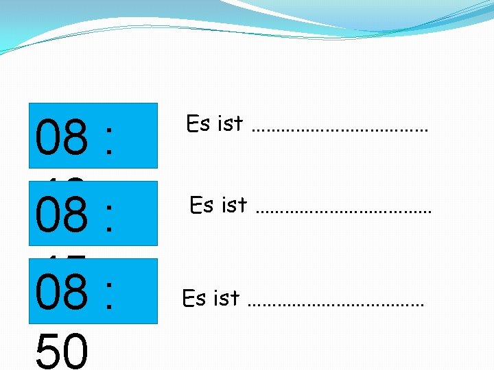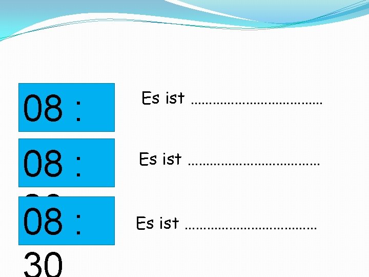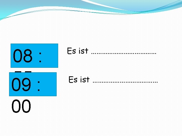 Wiederholung 08 : 00 08 : 05 08 : Es ist …………………………… Es ist ………………