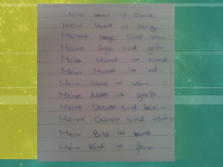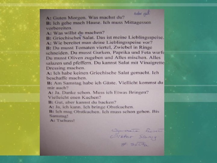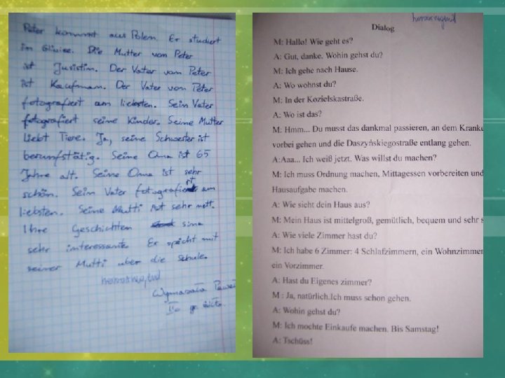 Hauseaufgaben • Kultur – Interesse fuer Kulturen anderer Laender • Dialoge – Lesen und Schreiben in fremden Sprechen • Text – Schreiben ueber jedes Thema • Hobby – Schreiben ueber das , , was wir wollen, was uns interessiert.