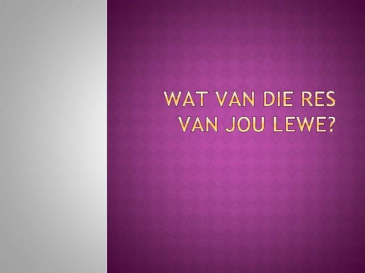 � Hierdie is die keuse of jy bereid is om van die FAN na die FOLLOWER te beweeg – no more talk, but action. Besef VOOR die tyd dat dit jou iets gaan en moet kos � Jy gaan moet breek met die ou dinge in jou lewe, en JESUS en Sy wil eerste in jou lewe stel � So besluit VOORDAT jy die keuse maak of jy kans sien vir dit wat Hy van jou vra as Sy Follower. � Die prys wat HY betaal het vir my en jou was nie cheap nie, daarom kos dit ‘n prys om Hom te volg!