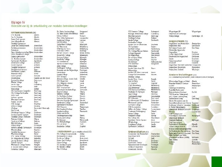 Vraag 5 Hoeveel scholen hebben als ontwikkelschool of testschool meegewerkt aan de ontwikkeling van modules? rood: minder dan 100 groen: meer dan 100 groen: er waren 96 ontwikkelscholen en 53 testscholen