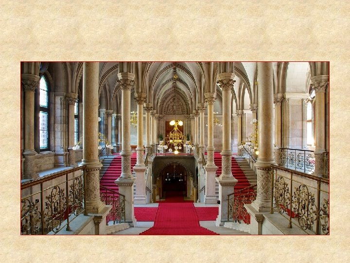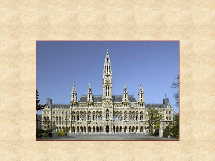 Wiener Rathaus Das von 1872 bis 1883 von Friedrich von Schmidt, vorher Dombaumeister in Köln, erbaute Wiener Rathaus ist der bedeutendste nichtkirchliche Bau Wiens im neugotischen Stil.