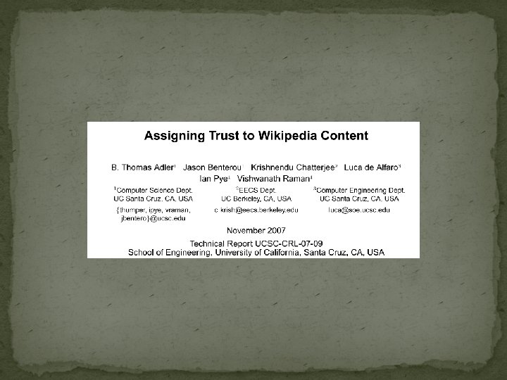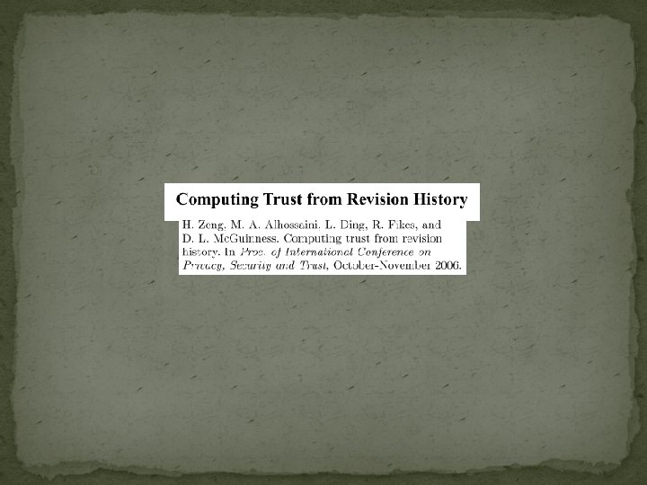 Summary �Uses revision history as well as the reputation of the contributing authors �Assigns trust to text