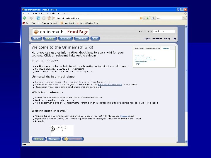 And you can add Images n Files n Even a working spreadsheet! n Go to http: //onlinemath. pbwiki. com for a math wiki n