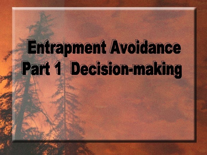 Objectives Part 1 Decision-making Ø Describe the role that LCES has in the Risk Management Process. Ø Describe a protocol for negotiating an unsafe assignment. Ø Define Trigger Point and Levels of Engagement. Ø Given a set of fireline conditions, identify valid trigger point(s).