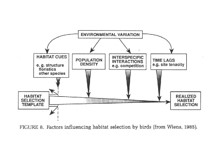 Testing the Hutchinsonian Niche Concept of Habitat Selection • James – work with birds in Arkansas…quantified habitat relationships • How do birds select habitat? • niche gestalt :