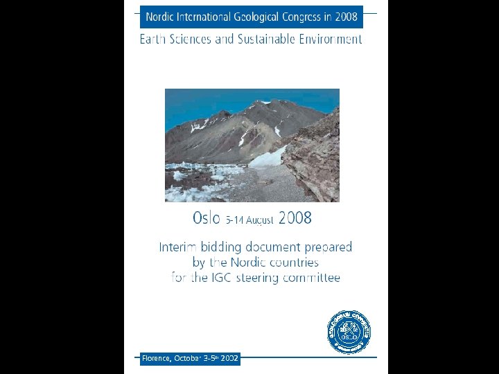 What is IGC? • IGC – International Geological Congress - a major geoscience event (”cosponsored” by IUGS) • Compares to the Olympic Games - takes place every four year • Attracts some 6000 geoscientists • Spans every geoscience discipline • Emphasizes the specialities and challenges of the region in question • Combines General and Special Symposia with an extensive number of Field Trips (in ”our” case covering all Nordic countries, including Greenland, Svalbard etc. . . )