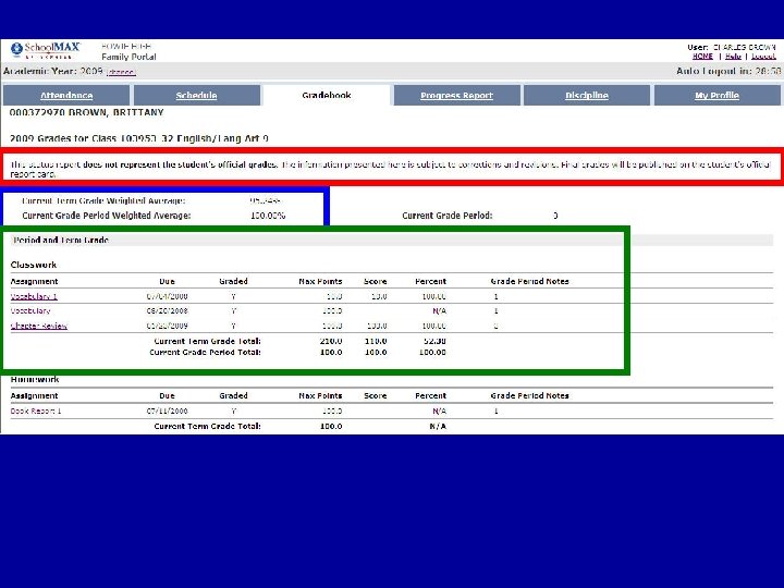 School. MAX Family Portal Gradebook Tab / Registro de Calificaciones