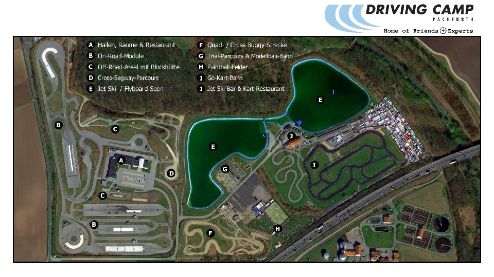 Was dagegen, wenn wir etwas angeben? Unsere acht On-Road-Module erfüllen höchste technische Ansprüche. Mit Dynamikplatten, Wasserhindernissen, Bodenwellen und Gleitflächen. Für Autos, Motorräder, Lkw, Busse und Kleintransporter. Im spektakulären Off-Road-Gelände finden Sie weitere Höhepunkte: Extreme Steigungen, höhenverstellbares Watbecken, Steintreppe, Querneigungshügel, Wasserfall und Blockhütte mit schönem Fernblick. Für Training, Erlebnis und Abenteuer. Die 1, 1 km lange Nass-Handlingstrecke bietet echtes Motorsport-Feeling. Mit herausfordernden Kurvenkombinationen und Queraquaplaning. Für Vergleichsfahrten, Ideallinien-Training und Drift-Erlebnisse. Auch an Extras haben wir nicht gespart: Elf Schulungscontainer, Flutlicht, Waschstraße und Werkstatt flankieren die Strecken im On- und Off-Road. Last but not least: Go-Kart- und Quad-Bahn, Segway-Parcours, Jet-Ski-See!