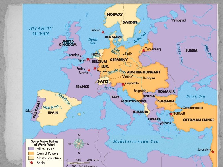President Woodrow Wilson’s Fourteen Points Speech § Jan. 1918: Wilson speech to Congress § Listed his ideas for a plan for peace (14 primary points) § Major idea- a League of Nations, an international group of nations working together to avoid future wars § Major idea – self-determination: a country’s borders should be chosen by the ethnic group living there § Later, some ideas were incorporated into the treaty that ended the war but others were not